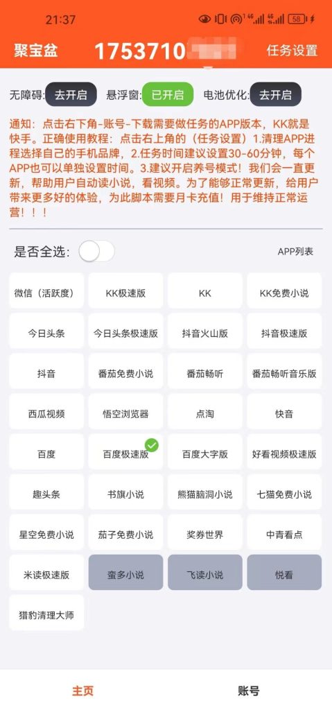 外面收費688的聚寶盆閱讀掘金全自動掛機項目,單機多平臺運行一天15-20+