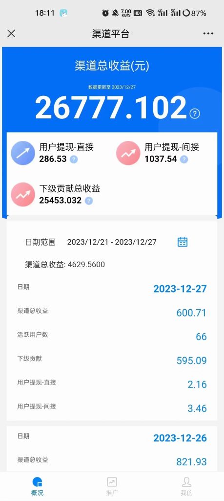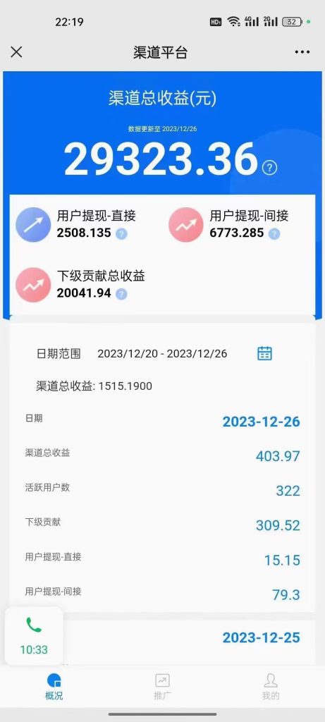 团长可以获得直推下级提现的百分之20,无限代百分之10的,收益提成